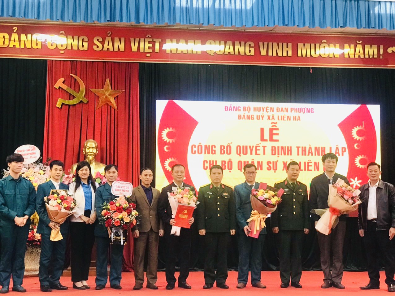 Thực hiện hướng dẫn số 24, 20/9/2023 của Ban Tổ chức Trung ương; Công văn số 619, ngày 27/11/2023 của Ban Thường vụ Huyện uỷ Đan Phượng. Chiều Ngày 12/01/2024, Đảng ủy xã Liên Hà tổ chức Lễ công bố Quyết định thành lập Chi bộ Quân sự xã.
