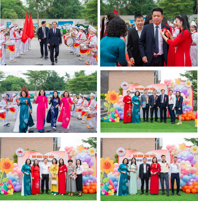 Các đồng chí lãnh đạo trao bằng công nhận trường đạt chuẩn Quốc gia mức độ 2