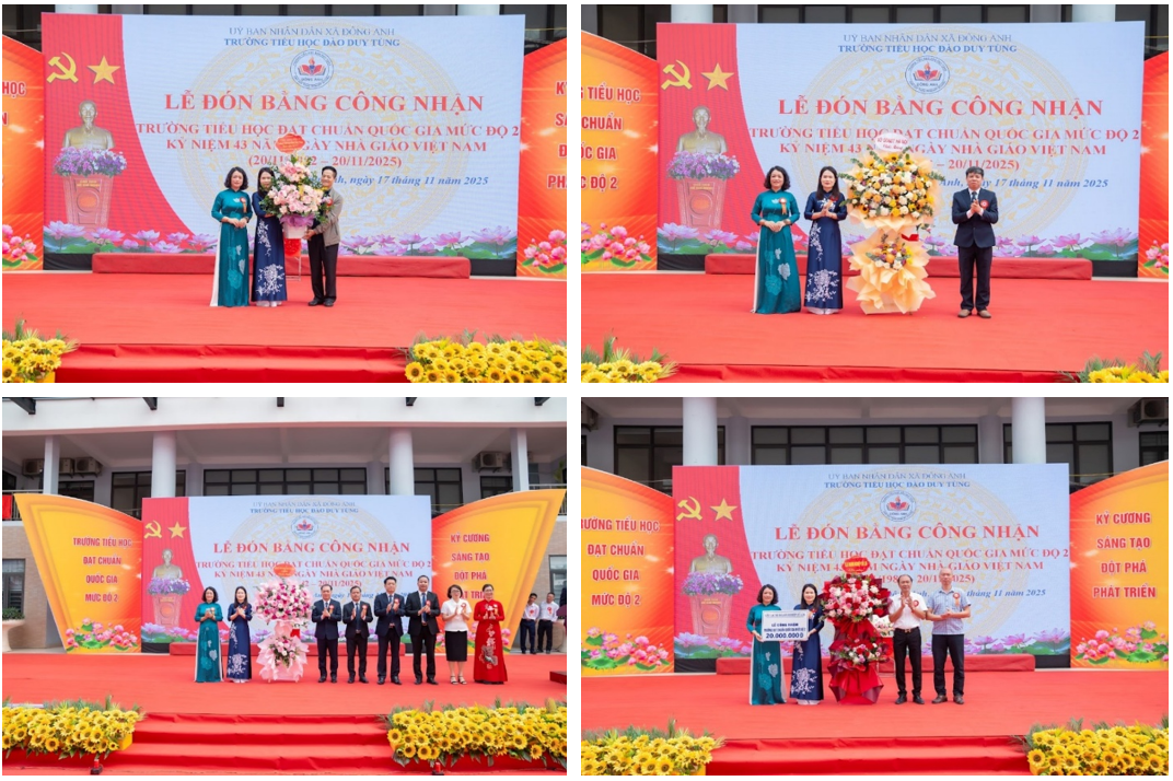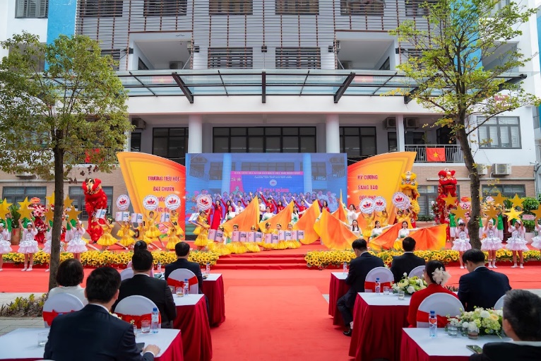 Tại buổi lễ, đại diện các cơ quan, ban ngành, doanh nghiệp và Ban đại diện cha mẹ học sinh đã lên sân khấu tặng hoa và gửi lời chúc mừng, ghi nhận những nỗ lực bền bỉ và thành tích xuất sắc của tập thể nhà trường.